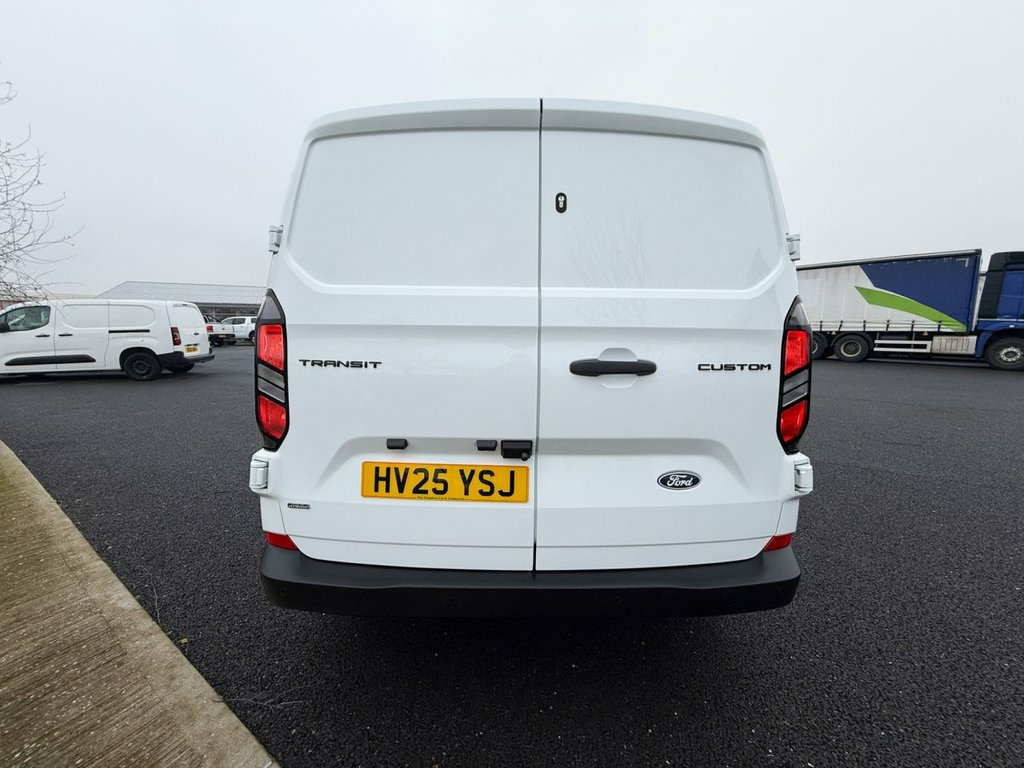 2025 Ford Transit Custom 2.5 320 Duratec 11.8kWh Trend Panel Van 5dr Petrol Plug-in Hybrid Auto L1 Euro 6 finished in Frozen White with Cloth - Plus Style 1 - Black Onyx Interior. Further specification includes but is not limited to, Speed Limiter-Engine Governor - 70mph - 113kph | Security Lock - Anti Pick | Tinted Glass Complete | Steering Wheel - Leather-Trimmed | SYNC 4 | Reversing Camera Pack - DAT Pack 2 | Keyless Start | Kerbside Side Load Door | Interior LED Lights | Hill Start Assist | Entry Dual Passenger Seat Pack | 5G Embedded Modem | 11kW Three Phase Onboard AC Charger | 13in Touchscreen 11kW Three Phase Onboard AC Charger, 13in Touchscreen, 16in Steel Wheels, 2 Remote Keys, 5G Embedded Modem, ABS - Anti-lock Braking System, AECS NO SMS - Roll Detect 2G, Alcohol Interlock, Auto High Headlamp, Automatic Air Conditioner, Automatic Headlights with Rain Sensing W, Bottle Holder - Twin 2 litre Bottle Capa, Courtesy Light, Daytime Running Lamps, Drivers Airbag, Dual Power Heated Signal Mirrors - Black, EBA - Emergency Brake Assist, EBD - Electronic Brakeforce Distribution, ESC - Electronic Stability Programme, Electric Brake Boost, Electric Window - Power Drivers Front, Emergency Brake Light Flashing, Engine Immobiliser, Entry Dual Passenger Seat Pack, Ford Easy Fuel System, Front