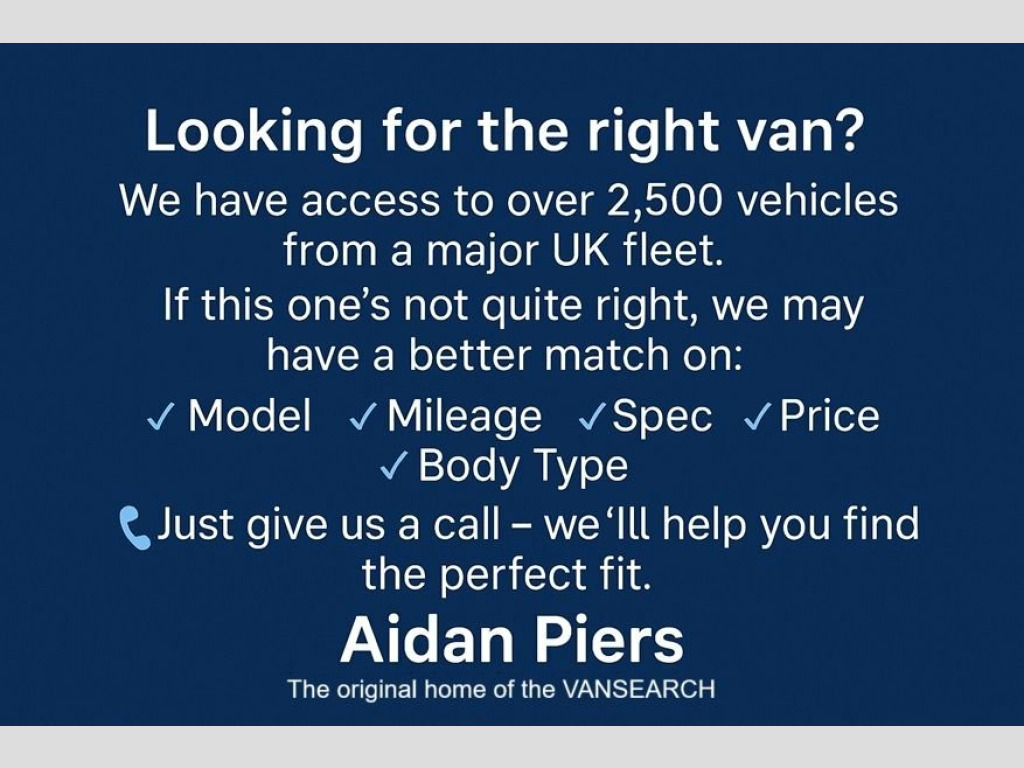 2019/19 FORD TRANSIT L4 EF LUTON BOX WITH TAIL LIFT – DOUBLE REAR WHEEL (DRW) – 130PS – FSH – 61,500 MILES A clean and well-presented Ford Transit L4 EF Luton Box, finished in white and fitted with a rear tail lift and double rear wheels, offering excellent load capacity, stability and durability for demanding commercial use. With just 61,500 miles and a full service history, this is a strong, dependable workhorse that has clearly been well maintained. Benefits of Double Rear Wheels (DRW): The DRW configuration provides increased rear axle load capacity, improved stability under load, better weight distribution and enhanced traction — particularly important for a Luton body. It reduces rear axle stress, improves tyre life when fully laden and delivers a more composed drive on motorways, in crosswinds and during frequent stop-start work. Ideal for removals, deliveries, logistics and heavier-duty applications. The 130PS diesel engine offers a strong balance of performance and economy, making this vehicle well suited to long-distance and urban commercial use alike. The vehicle presents in nice condition throughout and is ready to go straight to work. Important note for business buyers: Aidan Piers supplies vehicles not only to end users but also to other trade outlets, meaning our stock moves quickly and we often have multiple similar vehicles available with varying mileages, specifications and budgets. If this Luton is not quite right, please c 150amp Alternator, 16in Steel Wheels, Airbags - Driver, Anti-Lock Braking System - ABS with Elec, Auxiliary Connection Point - 3x12V - 60A, Battery - Cold Start -20 Degree C, Bumper - Front Body Colour - Partial, Courtesy Lights - Header-Mounted Front w, Curve Control, Daytime Running Lamps, Door Handles - Self Coloured, Door Mirrors - Blind Spot Eliminator and, Door Mirrors - Manual Adjust, Driver 4-Way Manual Adjustment with Cush, Drivers Seat Armrest, EBA - Emergency Brake Assist, ESC - Electronic Stability Control, Fixed Rear Windows, Floor Covering - Cab Easy-Clean Rubber, Ford Connected Audio System, Ford Easy-Fuel Capless Refuelling System, Ford Eco Mode - Driver Information Syste, Fr