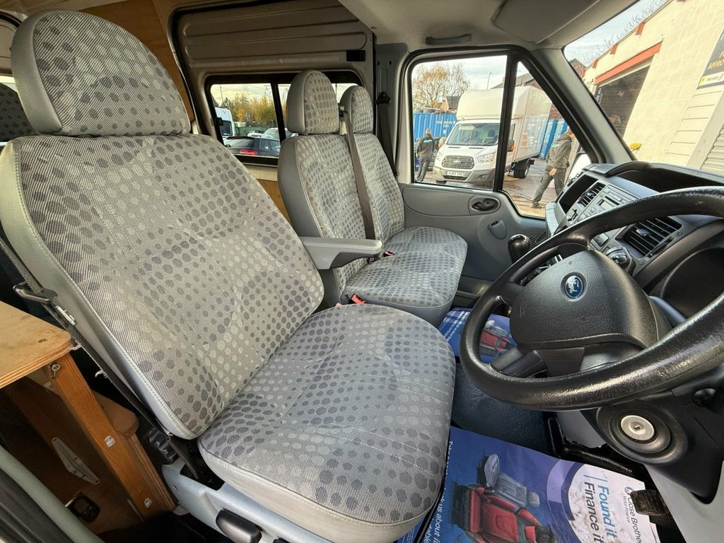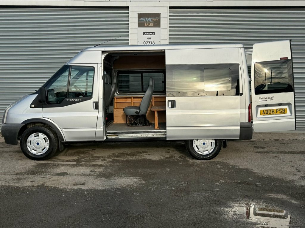2008 Ford Transit Medium wheel base medium roof van has just finished our preparation process and had a full service, new leaf spring, new boost pipe along with a detailed valet and polish. The van boasts air con, part camper conversion, window van MOT June 2026, Before leaving SMC VAN SALES this van will go through a full pre delivery inspection for your peace of mind. Walk around video available on our website. Air Bag Driver, Anti-Lock Brakes, Armrest, Bulkhead, Bulkhead-Fully Recessed (Unglazed), Bumpers, Central Door Locking, Clock, Computer (Driver Information System), Cup Holder, Doors - Winged, Extra Storage, Head Restraints, Immobiliser, In Car Entertainment (Radio/CD), Mirrors External, Power Socket, Power-Assisted Steering, Seat Height Adjustment, Seats - 6 Way Driver + Dual Pass - Vinyl, Speakers, Steel Wheels, Sun Visor, Tachometer, Towing Equipment (General), Trip Computer, Upholstery Cloth, Windscreen Wiper