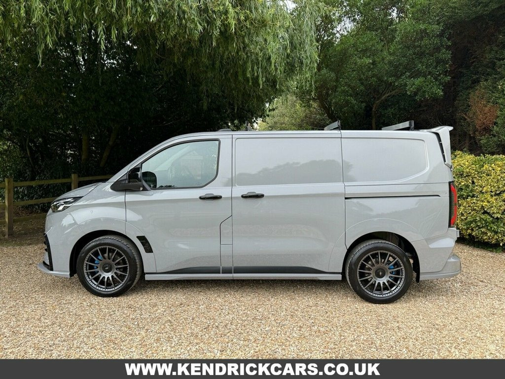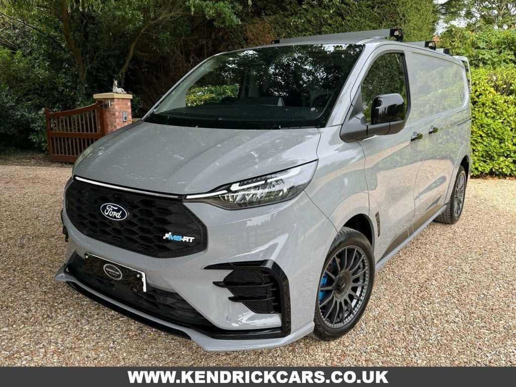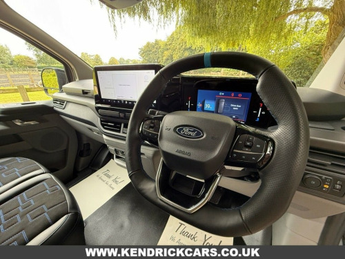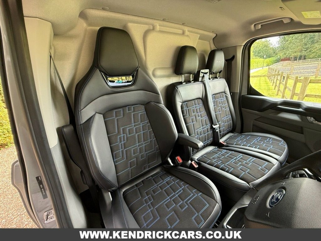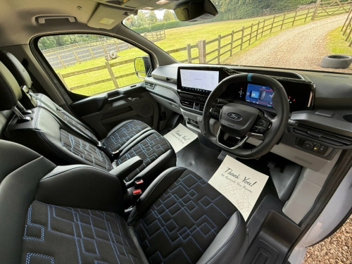 With only one previous owner, this 2024 Ford E-Transit Custom 320 MS-RT is ready for its next chapter. This stylish electric van, with its MS-RT trim, combines practicality with modern features. The vehicle history check is clear, and the MOT is valid until December 2027, offering peace of mind. It comes equipped with fixed DSS LED headlamps with auto high headlamps, keyless entry, and a reversing camera pack that includes front and rear parking sensors and a rear camera, making parking a breeze. The premium non-animal eco-leather dual passenger seat is heated for added comfort, and wireless phone charging keeps you connected on the go. The E-Transit Custom 320 MS-RT houses an 83 kWh battery, providing a maximum range of 165 miles when new. Charging is convenient, taking just 6 hours and 20 minutes at home with a 7kW charger. For those needing a quicker charge, public charging can take the battery from empty to 80% in just 28 minutes. The van's engine boasts an impressive 281 bhp, meaning it has more power than similar vehicles. 11kW Three Phase Onboard AC Charger, Steering Wheel - Heated - Sensico-Wrappe, 13in Touchscreen, Wireless Charging, Roof Rack - Integrated Stowable, 19in Alloy Wheels - Multi-Spoke - Carbon, 2 Remote Keys, 3 Phase Charge Cord, 5G Embedded Modem, ABS - Anti-lock Braking System, AECS NO SMS - Roll Detect 2G, Aggressive and Aerodynamic Front Bumper , Alcohol Interlock, Ambient Interior Lighting, Automatic Headlights with Rain Sensing W, Bodyside Mouldings - Body Colour, Bottle Holder - Twin 2 litre Bottle Capa, Brake Callipers Painted in MS-RT Blue, Cab as Office, Close Assist, Coast-to-Coast Light Bar, Comfort Plus Dual Passenger Seat Pack, Courtesy Light, Daytime Running Lamps, Door Handles -