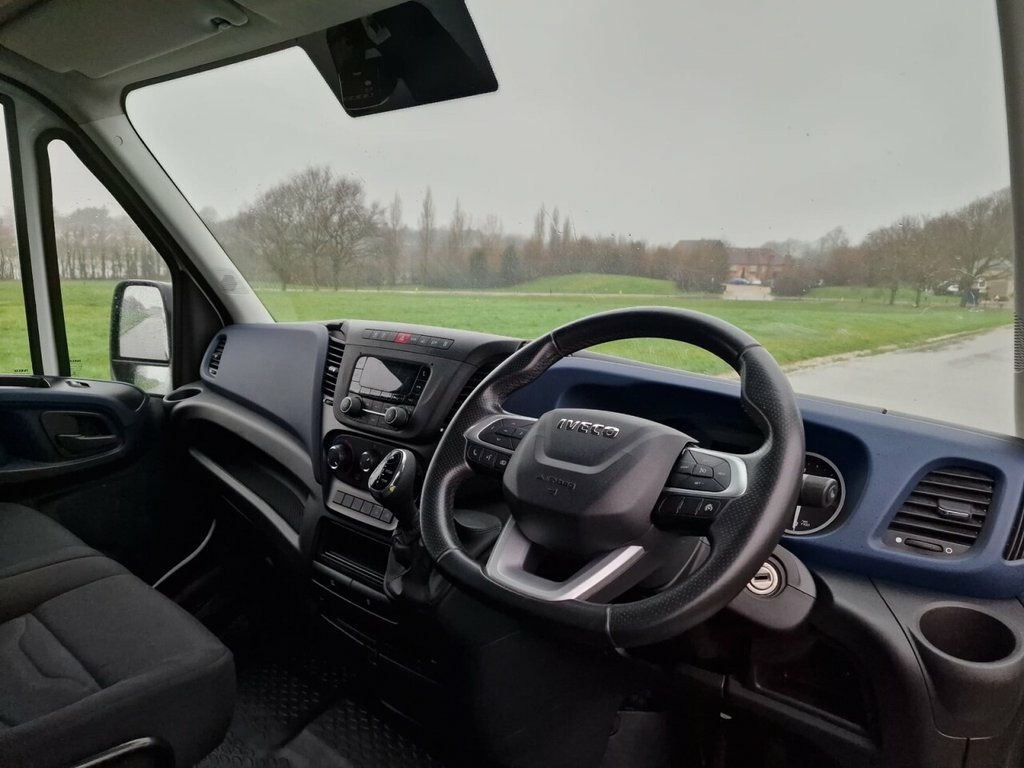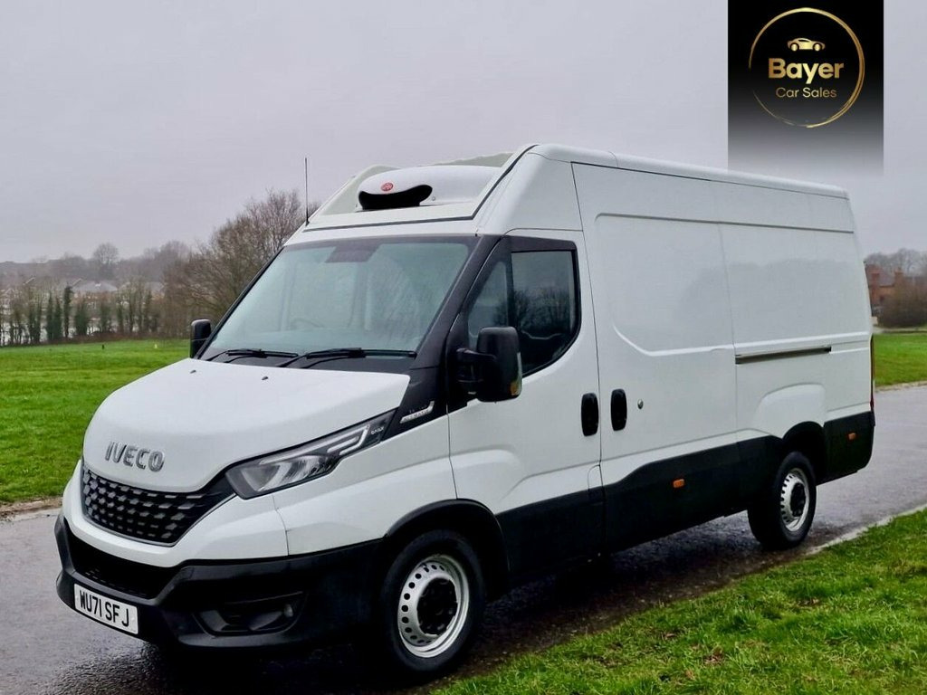 This 2021 Iveco Daily presents a superb ownership history, having had just one owner from new. This Euro 6 compliant 2.3 litre diesel panel van, a 35S 3520 HiMatic MWB H2 model, offers a substantial towing weight of 3500 kg, making it a capable choice for a variety of tasks. It comes equipped with a predisposition for towing, including a towbar, and features a digital Bluetooth radio with app connectivity for your convenience. Including Fridge Chiller. The Iveco Daily stands out with its low insurance group, indicating that running costs are likely to be more economical compared to similar vehicles. This particular model's combination of a powerful yet efficient 2.3 litre diesel engine, the user friendly HiMatic automatic transmission, and its robust build quality ensures it is well suited for demanding work environments. Its Euro 6 emissions rating also means it meets current environmental standards. 160kmh Limiter, 16in Steel Wheels, 180 Degree Rear Doors, 2 Seat Bench with 3 Point Seatbelts, 20L Under Cab Urea Tank, 3 Piece Bumper, 3rd Stop Light, 70L Shaped Fuel Tank, ABS - EBD and ESP 9 - Incorporating Hill, Acoustic Comfort Kit, Airbags - Drivers and Seatbelt Pre-Tensi, Alternator 220A, Athermic Green Tinted Windscreen, Battery 105Ah Heavy Duty, Battery Smart Charging, Bulkhead - Full Steel Unglazed, Cab Rear Trim Panel, Central Parking Brake, Charged Battery, Cloth - Black, Colour TFT Instrument Cluster MPH, Data Set Standard, Daytime Running Lights, Del Int Cov, Delete Cab Rear Trim, Delete Charge Connect, Delete Front and Rear Mudflaps, Delete Radiator, Delete Spare Wheel Carrier