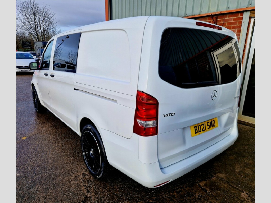 FINANCE AVAILABLE, This 2021 Mercedes Benz Vito 2.0 114 CDI Progressive Crew Van is a superb example, having had only one owner since new. This LWB L2 Euro 6 diesel model boasts a 2.0 litre engine and is presented in the Progressive trim. It comes equipped with the Audio 30 system, offering seamless integration with Android Auto and Apple CarPlay, alongside Bluetooth connectivity. For enhanced visibility and convenience, it features Headlight Assistant with automatic headlights and a helpful reversing camera for easier parking. The Vito Progressive Crew Van is designed for practicality and comfort. Its Euro 6 compliant engine ensures efficient performance, while the G-Tronic automatic transmission and rear wheel drive provide a smooth and capable driving experience. The inclusion of features like the reversing camera and automatic headlights demonstrates a higher level of specification, making this particular Vito a more appealing choice for those seeking advanced driver aids and connectivity. 16in Steel Wheels, ABS - Anti-Lock Braking System, ATTENTION Assist, Accident Recovery and Breakdown Manageme, Active Brake ASSIST, Airbag - Co-Driver, Airbag - Driver, Anti-Theft Protection Package, Audio 30, Black-Tinted Windows in Rear, Colour-Coded Front and Rear Bumpers, Comfort Driver Seat, Comfort Overhead Control Panel, Crosswind Assist, Cruise Control, Door Mirrors - Heated and Electrically A, Double Co-Driver Seat, Double Locks, Electric Windows - Front, Electromechanical Steering, Halogen Fog Lights, Heat Insulating Glass, Lighting - Headlight Assistant, Lockable Glove Compartment, Multifunction Steering Wheel, Rain Sensor, Remote Central Locking, Reversing Camera, Seating - Lumba