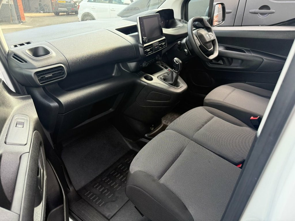 Peugeot Partner 1.5 1000 HDI Blue Professional L1 Swb Low Roof, 2020 20 Reg, 47 000 Miles (Warranted), On Board Computer, 100 BHP, 3 Seater Cab, Side Loading Door, Central Locking, Electric Windows, Electric Mirrors, Air Conditioning, Parking Sensors, Power Assisted Steering, Immobiliser, CD Stereo, AUX Input, USB Input, Bluetooth, Dab Radio, Apple Car Play, Drivers Airbag, Head Restraints, Height Adjustable Drivers Seat, Cloth Seat Trim, ESP, ABS, Traction Control. 12V Power Socket - Dashboard, 16in Steel Wheels with Rakiura Wheel Cov, 6 Floor Mounted Load Securing Rings, 6 Tie Down Hooks In Load Area, 6 Way Adjustable Drivers Seat - Lumbar A, 8in Capacitive Colour Touchscreen with C, Air Conditioning, Automatic Activation of Hazard Warning L, Automatic Electric Parking Brake, Cruise Control with Programmable Speed L, Cup Holders for Driver and Passenger - S, Dashboard Mounted Central Locking Push B, Door Mirrors - Electrically Folding with, Door Opening Warning and Audible Lights-, Door Pockets - Front - Including Storage, Driver Seatbelt Unfastened Warning, Drivers Airbag, Electric Power Steering with Reach and R, Electronic Stability Control and ABS