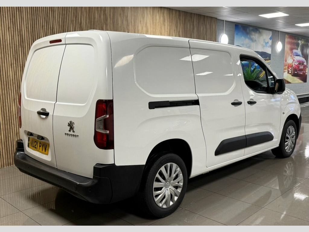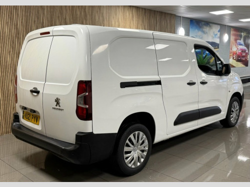 NU21 PYV – 2021 PEUGEOT PARTNER 1.5 BlueHDi 950 PROFESSIONAL LONG PANEL VAN LWB EURO 6 (100 BHP) 86,432 miles | Diesel | Manual | Euro 6 | ULEZ Compliant | Immaculate | Ready To Go This 2021 Peugeot Partner Professional Long is a superb long wheelbase small van offering excellent load capacity, low running costs and proven reliability. Finished in clean Bianca White and presented in immaculate condition, it's a straight, tidy example that's clearly been well looked after. With its LWB configuration, this Partner is ideal for trades, engineers or delivery operators who need extra carrying space while retaining easy manoeuvrability and car-like driving comfort. The Professional trim delivers a strong blend of practicality and driver convenience, making day-to-day work more comfortable and efficient. Compact enough for urban routes yet spacious enough for serious work, this Partner is a versatile and dependable business tool that's ready to go straight into service. TECH & FEATURES Professional specification Long wheelbase (LWB) configuration Air conditioning Touchscreen infotainment system Bluetooth hands-free and media streaming DAB radio USB connectivity Cruise control with speed limiter Electric windows Electric, heated door mirrors Remote central locking Multi-function steering wheel Height-adjustable driver's seat Fold-down passenger seat Practical cab storage solutions Ply-lined load area Twin sliding side doors Rear barn doors Powered b 12V Socket - Dashboard, 16in Steel Wheels with Rakiura Wheel Cov, 6 Floor Mounted Load Securing Rings, 6 Tie Down Hooks In Load Area, 6 Way Adjustable Drivers Seat - Lumbar A, 8in Capacitive Colour Touchscreen with C, Air Conditioning, Automatic Activation of Hazard Warning L, Automatic Electric Parking Brake, Bianca White, Cruise Control with Programmable Speed L, Cup Holders for Driver and Passenger - S, Dashboard Mounted Central Locking Push B, Door Mirrors - Electrically Folding with, Door Opening Warning and Audible Lights-, Driver Seatbelt Unfastened Warning, Drivers Airbag, Electric Front Windows with One-Touch Op, Electric Power Steering with Reach and R, Electronic Stability Control