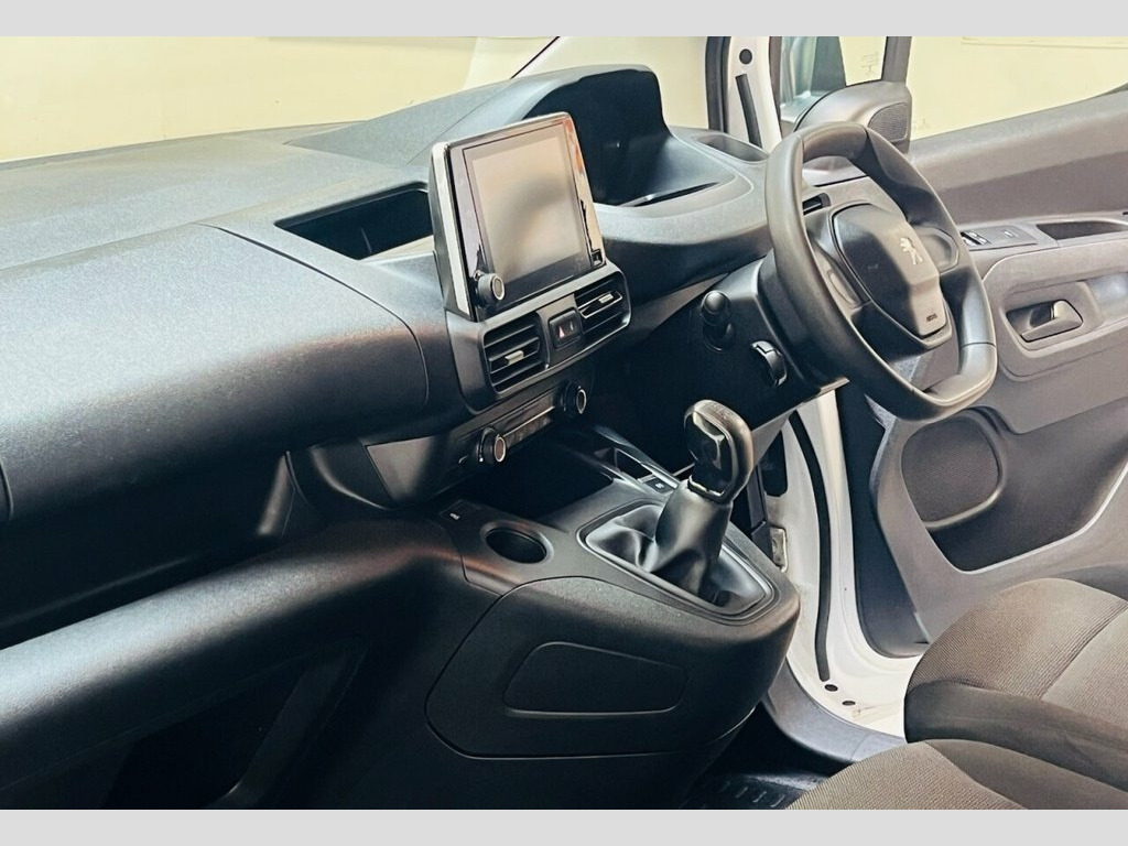 Peugeot Partner 1.6 BlueHDi 1000 Professional SWB Panel Van – One Owner – 69980 Warranted Miles Available now is this outstanding example of the Peugeot Partner 1.6 BlueHDi 1000 Professional Standard Panel Van, finished in classic white with a clean and straight body, clearly cared for by its single previous owner. The 1.6-litre BlueHDi diesel engine, producing 100 bhp, offers an excellent balance between pulling power and efficiency. It's compliant with Euro 6 emissions regulations, which means it's fully ULEZ-exempt and ideal for both city centres and motorway work. Step inside the cabin and you'll find a workspace designed with the driver in mind. The interior is surprisingly refined for a commercial vehicle, featuring high-quality materials, robust trim, and ergonomic layout. The three-seat cab provides a comfortable driving position, with the middle seat folding down to reveal a mobile desk surface and cup holders. The Professional trim level includes a touchscreen infotainment system with DAB radio, Bluetooth and USB input allowing you to stay connected on the go. Air conditioning keeps the cabin cool during summer jobs, while cruise control and steering wheel-mounted controls make longer journeys more relaxed and efficient. The van's load area is as practical as it is spacious, with a flat floor, ply lining in excellent condition, and secure bulkhead separation from the cabin. Access is made easy via wide-opening rear barn doors and 12V Power Socket - Dashboard, 16in Steel Wheels with Rakiura Wheel Cov, 6 Floor Mounted Load Securing Rings, 6 Way Adjustable Drivers Seat - Lumbar A, 8in Colour Touchscreen with Connect DAB , Air Conditioning, Alarm - Thatcham Category 1, Automatic Activation of Hazard Warning L, Automatic Electric Parking Brake, Cruise Control with Programmable Speed L, Cup Holders for Driver and Passenger - S, Dashboard Mounted Central Locking Push B, Door Mirrors - Electrically Folding with, Door Opening Warning and Audible Lights-, Door Pockets - Front - Including Storage, Driver Seatbelt Unfastened Warning, Drivers Airbag, Electric Power Steering with Reach and R, Electronic Stability Control and ABS w