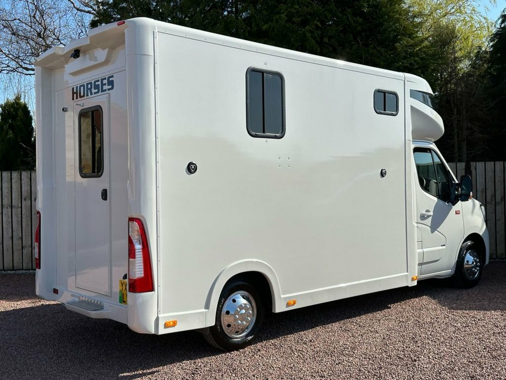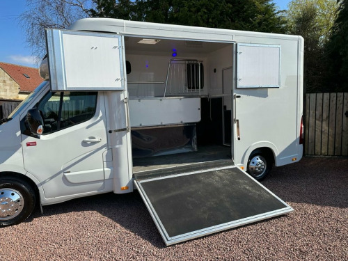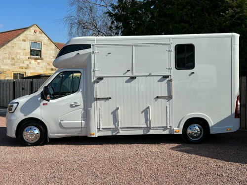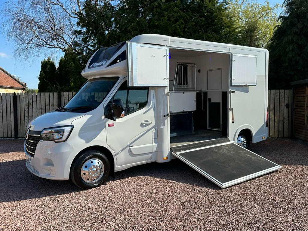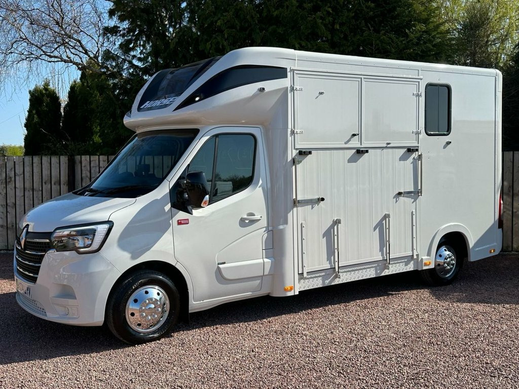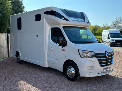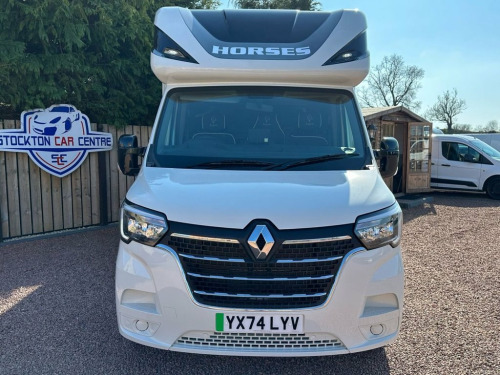 RENAULT TRUCKS MASTER REGENT HORSEBOX ELECTRIC AUTO 76 BHP *3.5T *Delivery mileage *Warranty & MOT until October 2027 *2 Doors *3 Seats *Automatic *Full Electric *ULEZ Compliant *One owner from new *Central locking *Trip computer *Rear view camera *Bluetooth compatible phone and audio connection *Automatic headlights *Heated windscreen *Steel stallion partitions *Black embossed faux leather upholstery with white contrast stitching and piping *Triple reinforced bulkhead *Over Luton storage with double doors *Aluminium Floors & ramp *Rubber floor *LED lights internally & externally *Colour CCTV horse & reverse *Separate groom changing room *Two saddle holders *Upholstered bench seat *Side loading ramp *AUX & USB Connection *AM/FM Radio *Electric windows. VQ (Business lease, PCP and HP available)