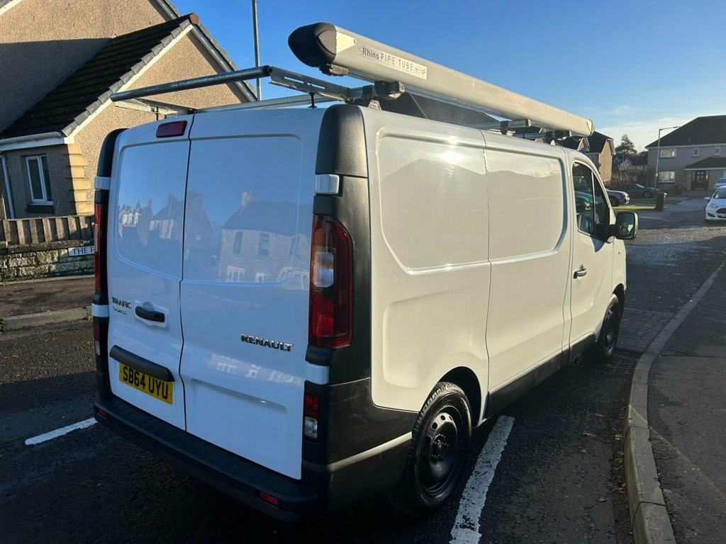 A very clean low mileage Trafic finished in white with a Rhino roof rack. 12V Power Socket - Front, 16in Steel Wheels with Large Wheel Style, ABS - Anti Lock Brakes, Airbags - Driver, Alarm - Pre-Wiring, Anchorage Points x16, Armrest - Driver, AUX Input, Bluetooth, Bulkhead - Full Steel, Closed Lid Glovebox - Not Lockable, DAB Radio, Deadlocking, Door Mirrors - Electrically Adjustable -, Door Mirrors - External Temperature Sens, EBD - Electronic Brake Distribution, Electric Windows - Front, Electronic Engine Immobiliser, ESC - Electronic Stability Control, Fuel Computer - Multifunctional, Gear Change Indicator, Glacier White, Grip X-Tend, HSA - Hill Start Assist, Left Side Loading Door - Unglazed, NO MediaNav or Renault R-Link 7in Touch , Passenger Bench Seat, Pow