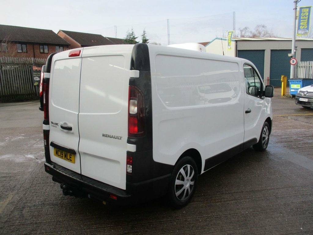 2019 RENAULT TRAFIC BUSINESS 1.6 DCI DIESEL ( 120 BHP ) EURO 6, ( FRIDGE CHILLER VAN ) FULLY LINNED IN REAR G.A.H UNIT CLOTH INTERIOR, POWER STEERING, MANUFACTURE RADIO, AUX, BLUETOOTH, ELECTRIC WINDOWS + MIRRORS, SIX SPEED MANUAL GEAR BOX, FULL STEEL BULK HEAD, SIDE LOADING DOOR, DOUBLE REAR DOORS, CENTRAL LOCKING, TOW BAR FITTED (( NEW CLUTCH )) AND ENGINE OIL FILTER SERVICE FULL YEARS MOT FRIDGE AS BEEN RE GASED SERVICED NO VAT READY FOR WORK PART EXCHANGE WELCOME ALL MAJOR CARDS ACCEPTED , FINANCE AVAILABLE, WARRANTY GIVEN, DELIVERY AVAILABLE, VISIT WEBSITE AT , WWW.PREMIERVANSALES.CO.UK OR CONTACT US ON 0161 429 8644 MARK MOBILE 07971 365977 NO VAT ON THIS CHILLER VAN £8500 NO VAT 12V Power Socket - Front, 16in Steel Wheel with Delos Wheel Trims, ABS with EBD - Electronic Brake Force Di, Airbags - Driver, Alarm, Anchorage Points x16, Bulkhead - Full Steel, Closed Glovebox, DAB Radio with Bluetooth - USB Socket an, Deadlocking, Door Mirrors - Heated with Electric Adju, Drivers Seat with Armrest - Height Adjus, Electric Windows - Front, Electronic Engine Immobiliser, ESC - Electronic Stability Control with , Gear Change Indicator, Left Side Loading Door - Unglazed, NO MediaNav or Renault R-Link 7in Touch , Passenger Bench Seat, Power Assisted Steering, Rear Doors - 180 Degree Solid, Remote Central Locking, Roof Bars Fixings, Seatbelts - 3 Point Height-adjustable Se, Spa