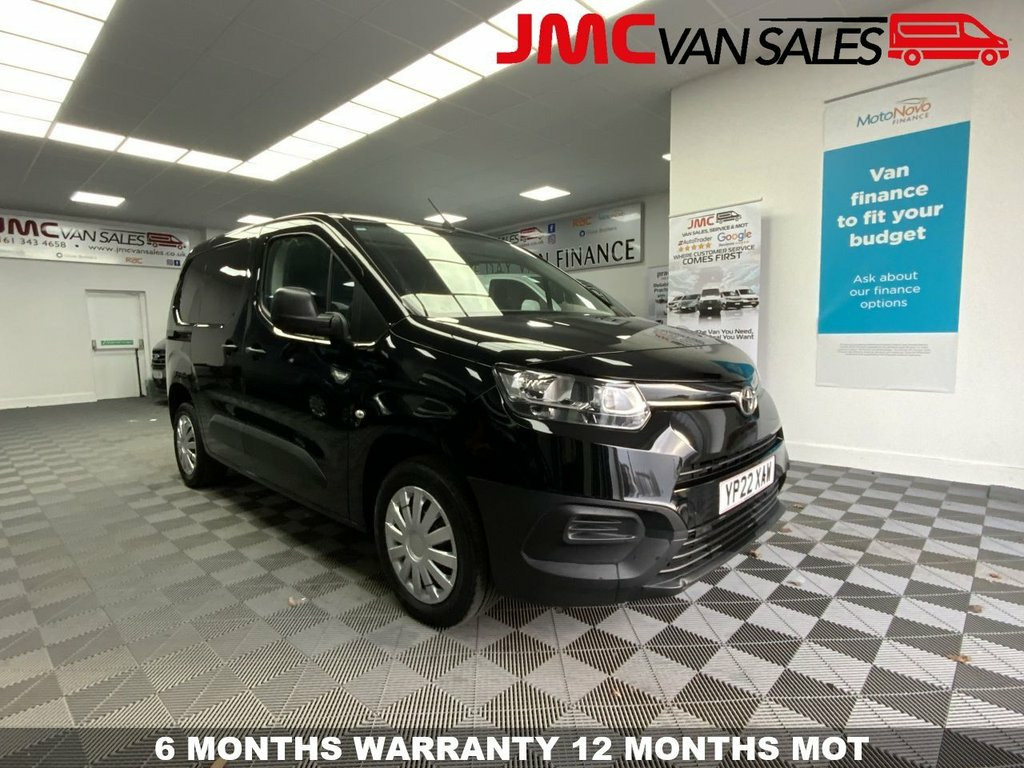 2022 22 reg TOYOTA PROACE ACTIVE, 1 OWNER FROM NEW, LOW 46000 WARRANTED MILES, FULL SERVICE HISTORY, 12 MONTHS MOT @ POINT OF SALE, 6 MONTHS NATIONWIDE WARRANTY, FULL SERVICE PRIOR TO COLLECTION, FEATURES INCLUDING AIR CONDITIONING, BLUETOOTH, DAB RADIO, USB CONNECTIVITY, CRUISE CONTROL, SPEED LIMITER, REAR PARKING SENSORS, ELECTRIC WINDOWS AND MIRRORS, REMOTE CENTRAL LOCKING, 16in Steel Wheels, 180 Degree Opening on Rear Wing Doors, 3.5in Colour Multi-Information Display, 5in Touchscreen, Adjustable Head Rests, Airbags - Driver, Anti Lock Braking System - ABS with Elec, Anti-Jam Protection on Power Windows, Armrest - Drivers, Audio Switches Behind Steering Wheel, Auto Headlights, BA - Brake Assist, Black Door Mirrors, Black Front and Rear Bumpers, Black Interior Door Handles, Black Protection Moulding on Side Doors, Black Upper Front Grille, Bluetooth Connectivity, Boot Light, Cargo Deck Load Hooks - x6, Chrome Insert on Gear Shift, Closed Upper Passenger Dashboard Storage, DAB Digital Radio, DAC - Downhill Assist Control, Daytime Running Lights, Door Handles - B