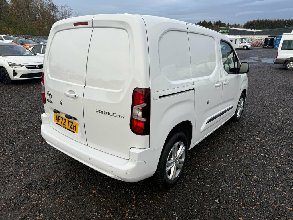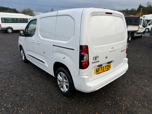 Toyota Proace City Design . Top of the range Proace in immaculate condition . Design spec so come fully loaded including Alloys , Air Con , reversing camera , sat nav , cruise control . 2 keys . FSH . Van will come with 12 months MOT and a full fresh service . 16in Alloy Wheels - 5 Double-Spoke, 3.5in Colour Multi-Information Display, 8in Multimedia Screen, Adjustable Speed Limiter - ASL, Anti Lock Braking System - ABS with Elec, Auto Headlights, Auto Wipers, BA - Brake Assist, Black Upper Front Grille, Bluetooth Connectivity, Body-Coloured Protection Moulding on Sid, Boot Light, Bumpers - Front and Rear - Body-Coloured, Cargo Deck Load Hooks - x6, Closed Upper Driver Dashboard Storage Co, Closed Upper Passenger Dashboard Storage, Cruise Control, DAC - Downhill Assist Control, Daytime Running Lights, Digital Audio Broadcast - DAB, Door Handles - Body Coloured, Door Mirrors - Black, Door Mirrors - Electric - Heated and Pow, Driver and Front Passeng