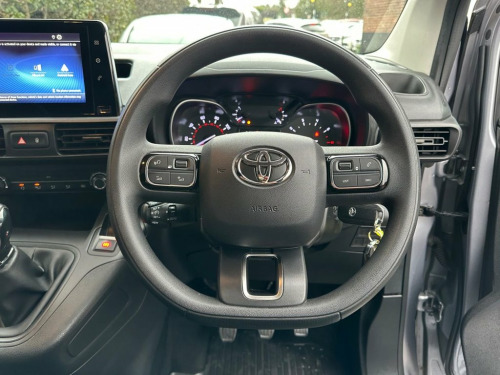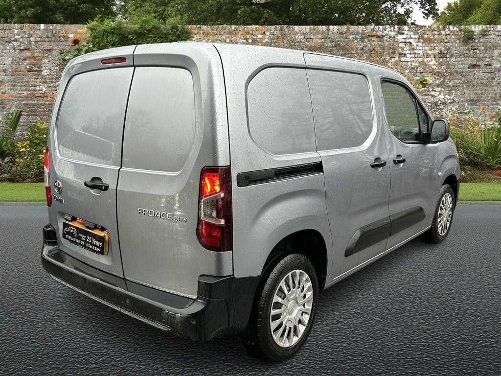 This 2021 Toyota PROACE CITY is a clear vehicle history example, offering peace of mind for its next owner. This Icon Short Panel Van SWB Euro 6 (s/s) 5dr model is equipped with a 1.5L BlueHDi diesel engine and boasts a Euro 6 emission class. For your convenience, it features manual air conditioning, a Bluetooth hands free system, and a reversing camera complemented by front and rear parking sensors. Automatic headlights and smartphone integration with Apple CarPlay and Android Auto further enhance its practicality. The PROACE CITY Icon stands out with its impressive fuel economy, achieving up to 50 mpg, which indicates it is more economical than many similar vehicles. Its low CO2 emissions also contribute to its appeal, suggesting a more environmentally conscious choice. This well appointed van combines efficiency with modern technology, making it a sensible option for various professional needs. Floor Mats - Rubber, Falcon Grey, 16in Steel Wheels with Wheel Caps - 5 Tr, 2 Remote Keys, 3 Seats - Driver and Smart Cargo Bench, 8in Multimedia Touchscreen, Adjustable Head Rests, Adjustable Speed Limiter - ASL, Analogue Speedometer, Anti Lock Braking System - ABS with Elec, Anti-Jam Protection on Power Windows, Audio Switches on Steering Wheel, Auto Wipers, BA - Brake Assist, Black Door Mirrors and Handles, Black Front and Rear Bumpers, Black Interior Door Handles, Black Upper Front Grille, Bluetooth Hands Free System, Cargo Area Illumination, Chrome Insert on Gear Shift, Closed Upper Driver Dashboard Storage Co, Closed Upper Passenger Dashboard Storage, Cruise Control, DAB Digital Radio,