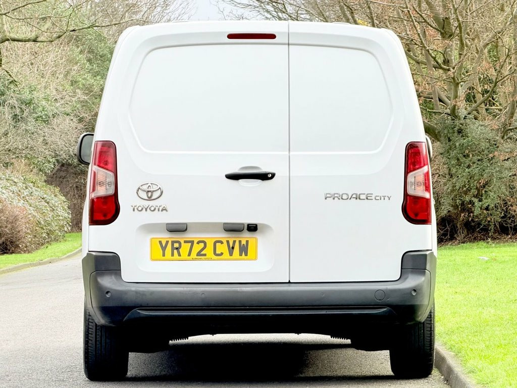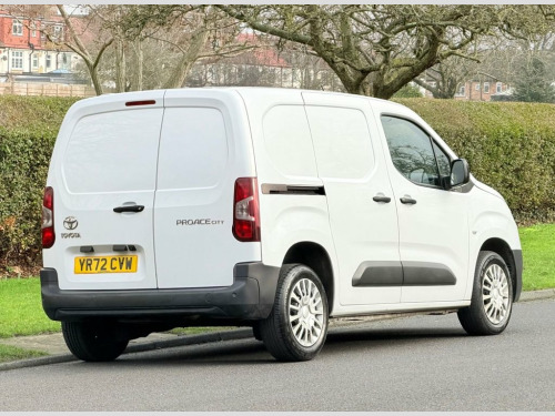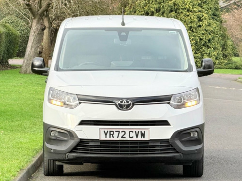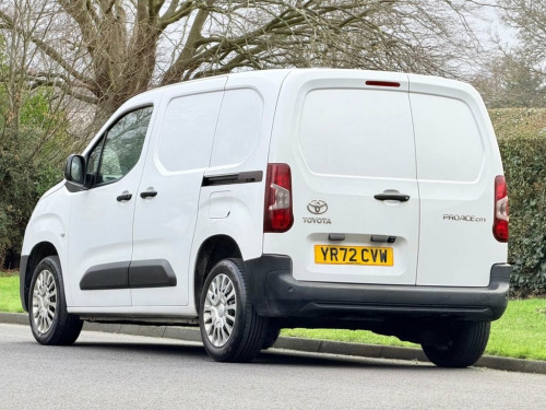 This 2022 Toyota PROACE CITY is a superb example, having had only one owner since new. This Icon derivative, featuring a 1.5 BlueHDi diesel engine and meeting Euro 6 emissions standards, offers a practical and efficient solution for your business needs. It comes equipped with automatic headlights for convenience, rear parking sensors and a reversing camera with dynamic guide lines to assist with manoeuvring, and seamless smartphone integration through Apple CarPlay and Android Auto. Bluetooth connectivity is also included, ensuring you can stay connected on the go. With a generous cargo volume of 3800 litres, this PROACE CITY is ready to handle your loads. Its impressive fuel economy of 51 mpg and low CO2 emissions highlight its efficiency, making it a more economical choice compared to many other vehicles in its class. This combination of low running costs and ample space makes the PROACE CITY a smart and capable van. 16in Steel Wheels with Wheel Caps - 5 Tr, 180 Degree Opening on Rear Wing Doors, 3.5in Colour Multi-Information Display, 8in Touchscreen, Adjustable Head Rests, Adjustable Speed Limiter - ASL, Airbags - Driver, Anti Lock Braking System - ABS with Elec, Anti-Jam Protection on Power Windows, Armrest - Drivers, Audio Switches on Steering Wheel, Auto Headlights, Auto Wipers, Aux-In Connector, BA - Brake Assist, Black Front and Rear Bumpers, Black Interior Door Handles, Black Protection Moulding on Side Doors, Black Upper Front Grille, Bluetooth Connectivity, Boot Light, Cargo Deck Load Hooks - x6, Chrome Insert on Gear Shift, Closed Upper Driver Dashboard Storage Co, Closed Upper Passenger Dashb