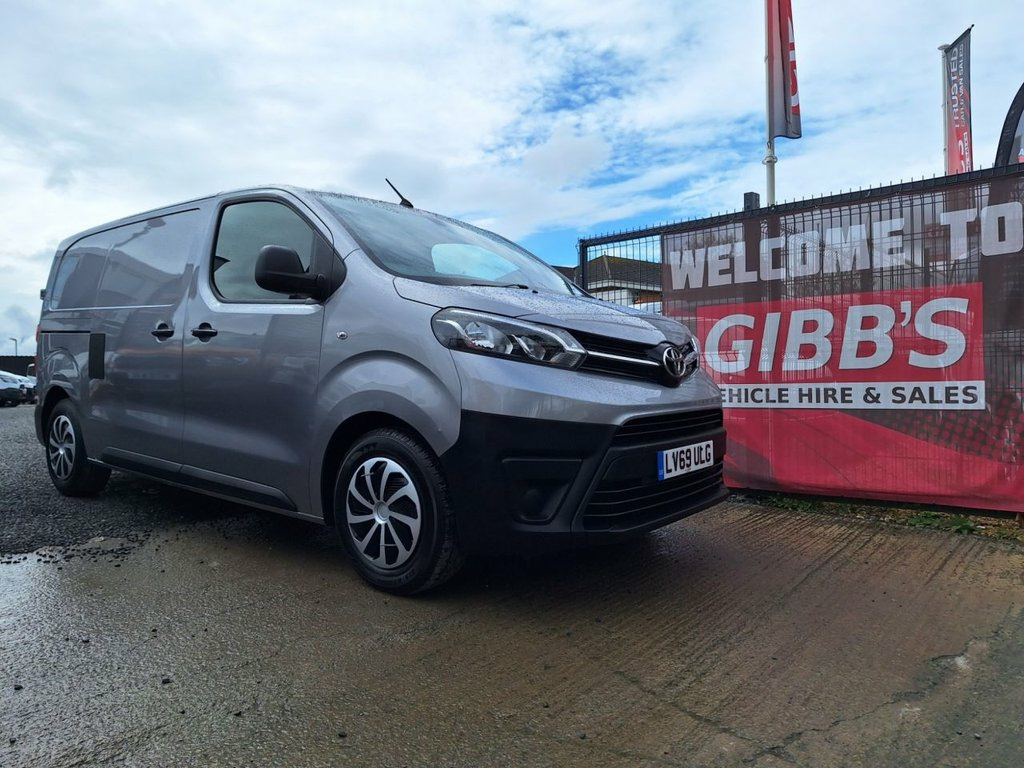 TOYOTA PROACE 1.5D Icon Medium Panel Van 6dr Diesel Manual MWB Euro 6 (120 bhp) 2019 EURO 6 READY TO DRIVE AWAY! MOT TO 05/05/2026, SERVICED TO 06/05/2027, PARTIAL SERVICE HISTORY, 1 OWNER FROM NEW, 3 SEATS, BLUETOOTH, AIR CONDITIONING, CRUISE CONTROL, AUTOMATIC HEADLIGHTS, ELECTRIC MIRRORS, POWER WINDOWS, CENTRAL LOCKING, SPARE WHEEL, ULEZ COMPLIANT, READY TO GO. 12V Socket in Dashboard and Rear, 12V Socket in Glovebox, 16in Steel Wheels with Wheel Caps - 5 Tr, ABS - Anti Lock Braking System, Acoustic Windscreen, Adjustable Speed Limiter - ASL, Air Conditioning and Smart Cargo, Armrest - Drivers, Auto Headlights, Auto Wipers, BA - Brake Assist, Black Front and Rear Bumpers, Black Protection Moulding on Side Doors, Bluetooth Hands Free System, Body Coloured Roof, Bulkhead - Steel with Window, Central Locking, Cruise Control, Cruise Control Switch on Steering Wheel, Daytime Running Lights - Bulb Type, Deadlocks, Digital Audio Broadcast - DAB, Door Handles - Black, Double Front Passenger Airbag, Drivers Seat Height Adjust and Lumbar Su, Front 12V Power