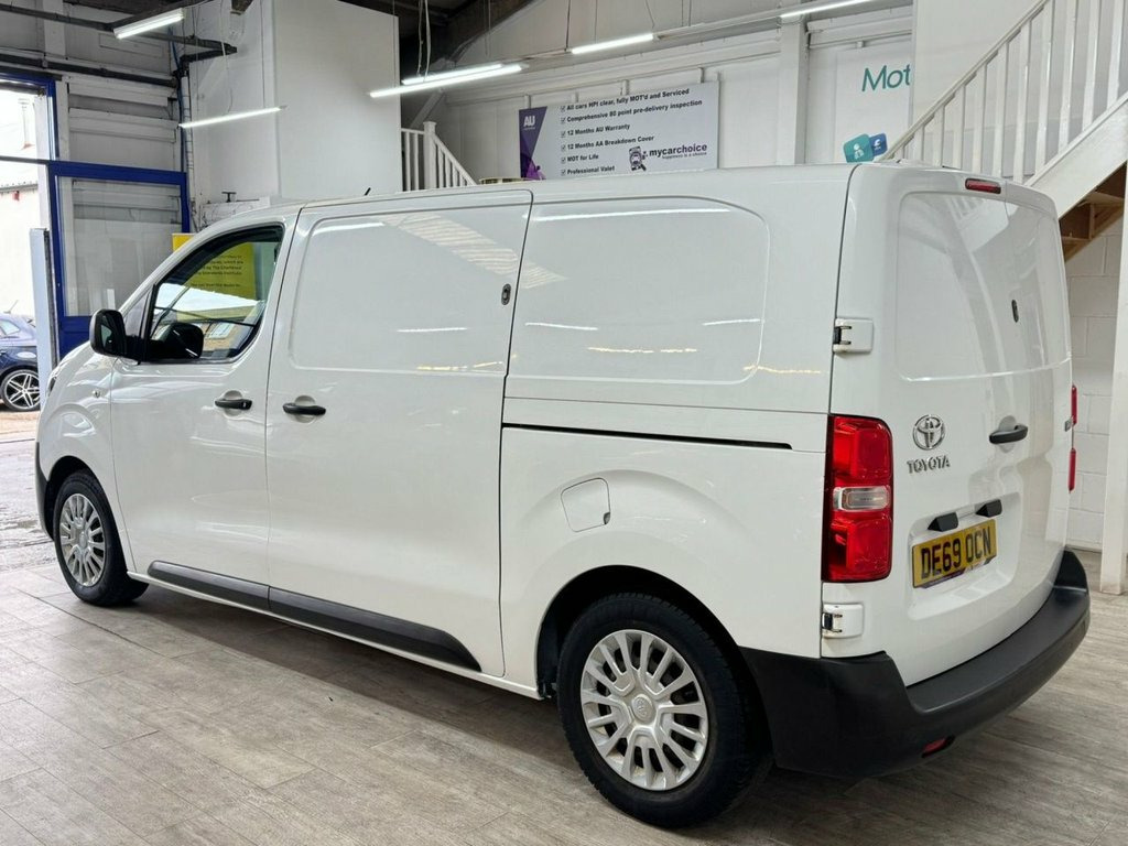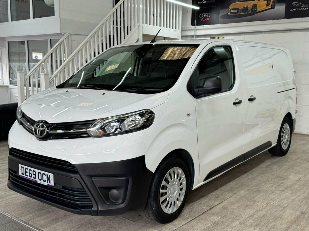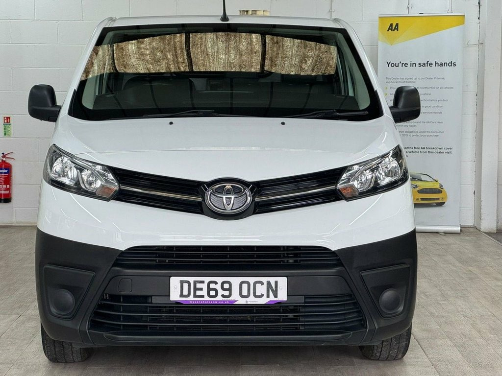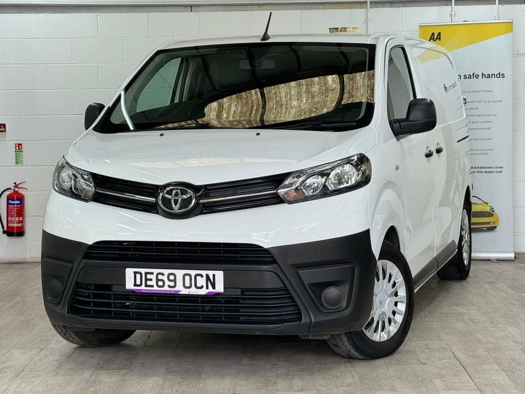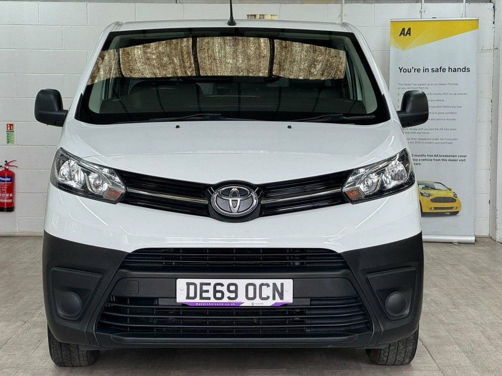 This 2019 Toyota ProAce offers exceptional value with remarkably low mileage for its age, having covered just 67,359 miles. This 1.5D Icon Medium Panel Van MWB Euro 6 6dr variant, in its D Icon trim, is powered by an efficient 1.5 litre diesel engine. It comes equipped with a useful Parking Pack featuring rear parking assistance, and the Smart Cargo system includes air conditioning to ensure comfort during your journeys. The ProAce also benefits from auto headlights and a Bluetooth hands free system for added convenience and safety. The ProAce stands out with its low CO2 emissions, contributing to a more environmentally conscious drive. Furthermore, its impressive fuel economy of 45 mpg means fewer stops at the fuel station, making it a cost effective choice for your business needs. These highlights, combined with its Euro 6 emission classification, demonstrate that this Toyota ProAce is a well maintained and economical option compared to many other vans of its type. 12V Socket in Dashboard and Rear, 12V Socket in Glovebox, 16in Steel Wheels with Wheel Caps - 5 Tr, ABS - Anti Lock Braking System, Acoustic Windscreen, Adjustable Speed Limiter - ASL, Air Conditioning and Smart Cargo, Armrest - Drivers, Auto Headlights, Auto Wipers, BA - Brake Assist, Black Front and Rear Bumpers, Black Protection Moulding on Side Doors, Bluetooth Hands Free System, Body Coloured Roof, Bulkhead - Steel with Window, Central Locking, Cruise Control, Cruise Control Switch on Steering Wheel, Daytime Running Lights - Bulb Type, Deadlocks, Digital Audio Broadcast - DAB, Door Handles - Black, Double Front Passenger Airbag, Drivers Seat Height Adjust and Lumbar Su, Front 12V Power