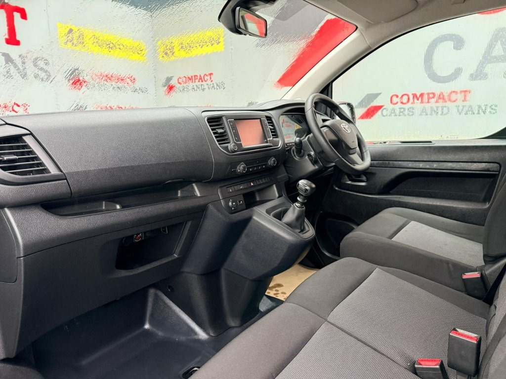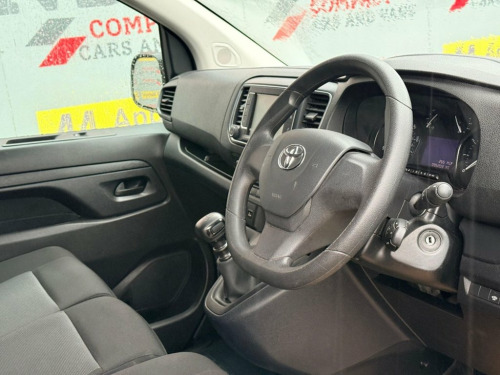engineered to the highest standards, with every detail thoughtfully crafted to perfection and renowned for its reliability The Toyota Proace is powered by a tried-and-tested 1.5-litre diesel engine, paired with a smooth 6-speed manual gearbox, delivering reliability and efficiency you can depend on. Inside, the cabin offers three comfortable seats, providing ample legroom and making it ideal for longer journeys. To the rear, you'll find a generously sized load area, ply-lined for added durability and fitted with shelving—perfect for work use, keeping your tools safe, secure, and well organised. The Proace also comes equipped with a great range of features, including parking sensors, satellite navigation, speed limiter, cruise control, telephone connectivity, and much more, ensuring comfort, convenience, and practicality on every drive. 12V Power Outlet - Cargo Area, 12v Power Outlet - Front, 13-Pin Trailer Connector, 16in Steel Wheels - 5 Triple Spoke with , 180 Degree Opening on Rear Wing Doors, Adjustable Lumbar Support on Driver Seat, Anti Lock Braking System - ABS with Elec, Anti-Tamper Alarm, Armrest - Drivers, Auto Headlights, Auto Up and Down Function on Power Windo, Auto Wipers, BA - Brake Assist, Black Front Bumper, Black Insert on Upper Front Grille, Black Protection Moulding on Side Doors, Black Rear Bumper, Bluetooth Connectivity, Bulkhead - Steel Panel with Window and P, Cargo Area Room Light - 2, Colour Multi-Information Display, Cruise Control, Cruise Control Switch on Steering Wheel, Daytime Running Lights,