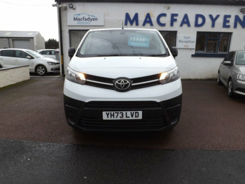 TOYOTA PROACE 1.5D Icon Medium Panel Van – Efficiency, Reliability & Professional Capability Introducing the YH73LVD Toyota Proace 1.5D Icon Medium Panel Van—a smart, efficient, and highly versatile commercial vehicle built for businesses that need dependable performance every day. With class?leading Toyota reliability, excellent fuel efficiency, and a practical, easy?to?use load space, the Proace is the ideal partner for trades, fleets, deliveries and growing businesses. Powered by a strong yet economical 1.5?litre Diesel Euro 6 engine producing 120 bhp, this Proace delivers smooth torque, low running costs, and outstanding long?distance comfort. Its Euro 6 compliance ensures cleaner emissions and full access to low?emission zones across the UK—perfect for city?based operators and national fleet work alike. The Medium Wheelbase (MWB) configuration offers an impressive and flexible load area that easily accommodates tools, equipment, building materials, or bulky cargo. Wide?opening rear doors and a practical side?loading door ensure quick and efficient access in tight sites or busy urban areas. Inside, the Icon trim provides a well?equipped, comfortable and connected cabin designed for professionals on the move. Enjoy features such as air conditioning, touchscreen infotainment, Bluetooth, cruise control, and smart storage, all helping create an enjoyable and productive working environment. Toyota's focus on ergonomic design means long journeys feel 12V Power Outlet - Cargo Area, 12v Power Outlet - Front, 13-Pin Trailer Connector, 16in Steel Wheels - 5 Triple Spoke with , 180 Degree Opening on Rear Wing Doors, Adjustable Lumbar Support on Driver Seat, Anti Lock Braking System - ABS with Elec, Anti-Tamper Alarm, Armrest - Drivers, Auto Headlights, Auto Up and Down Function on Power Windo, Auto Wipers, BA - Brake Assist, Black Front Bumper, Black Insert on Upper Front Grille, Black Protection Moulding on Side Doors, Black Rear Bumper, Bluetooth Connectivity, Bulkhead - Steel Panel with Window and P, Cargo Area Room Light - 2, Colour Multi-Information Display, Cruise Control, Cruise Control Switch on Steering Wheel, Daytime Running Lights,