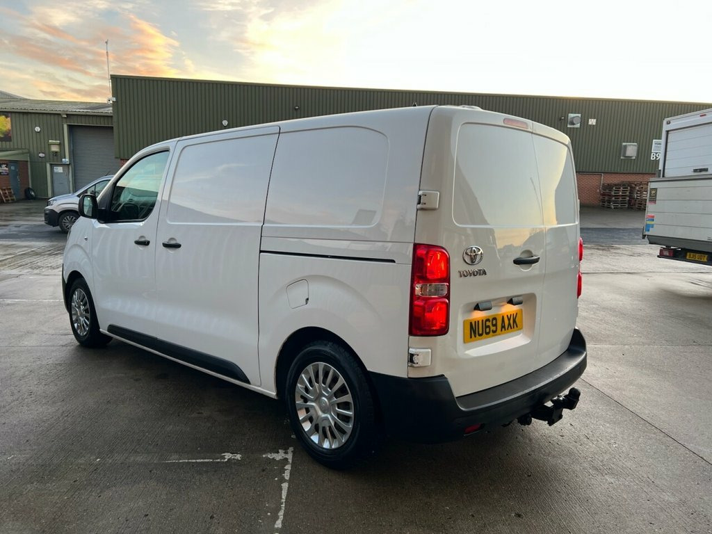 This 2019 Toyota ProAce 1.6D Icon Medium Panel Van MWB Euro 6 (s/s) 6dr boasts a full service history and has had only one owner from new, with a clear vehicle history check. This D Icon variant, in Icon trim, is equipped with a 1.6 litre diesel engine and meets Euro 6 emissions standards. Notable features include a comprehensive towing solution with both 7 pin and 13 pin connections, a parking pack with rear sensors for easier manoeuvring, and automatic headlights for convenience. Inside, you'll find Bluetooth hands free for safe communication and air conditioning for a comfortable driving experience, alongside smart cargo solutions. This ProAce offers excellent fuel economy, achieving a highlight of 54 miles per gallon, and also benefits from low CO2 emissions, indicating it is more efficient than many similar vehicles. Its practical design and thoughtful features make it a capable and economical choice for your business needs. Floor Mats - Rubber, Fabric - Dark Grey, Vivid White, Lining Kits - Ply Lining, Towing Solutions - Flanged 7-pin and 13-, 12V Socket in Dashboard and Rear, 12V Socket in Glovebox, 16in Steel Wheels with Wheel Caps, ABS - Anti Lock Braking System, Acoustic Windscreen, Additional Speedometer in Multi-Informat, Adjustable Speed Limiter - ASL, Air Conditioning and Smart Cargo, Analogue Tachometer, Anti-Tamper Alarm, Armrest - Drivers, Auto Headlights, Auto Wipers, Aux-In Connector, BA - Brake Assist, Black Front and Rear Bumpers, Bluetooth Hands Free System, Body Coloured Roof, Bulkhead - Steel with Window, Cargo Area Room Light - 2, Cruise Control Switch on Steering Wheel, Cruise Control with S