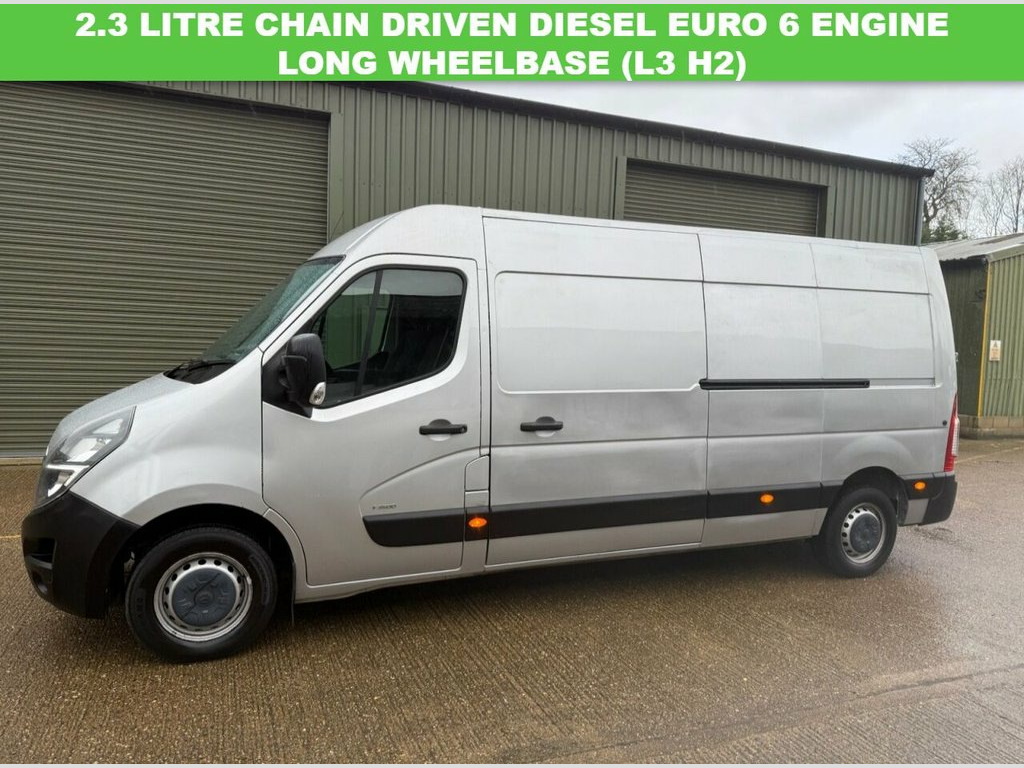HERTS MOTORS VAN SALES ARE PLEASED TO OFFER FOR SALE THIS VAUXHALL MOVANO L3 H2 LONG WHEELBASE F3500 CDTI. 2.3 DIESEL EURO 6 ENGINE - CHAIN DRIVEN WITH A 6 SPEED GEARBOX. 1 OWNER FROM NEW - FULL SERVICE HISTORY. THIS VAN HAS AIR CONDITIONING - REAR PARKING SENSORS - APPLE CAR PLAY - ANDROID AUTO - CRUISE CONTROL - SAT NAVIGATION - BLUETOOTH + DAB RADIO. IN THE REAR IS FULLY PLY LINED. TOW BAR + ELECTRICS FITTED FINISHED IN METALLIC SILVER! TO RESERVE PLEASE CALL DANIEL ON 01992 447 447. FINANCE IS AVAILABLE. PART EXCHANGES ARE WELCOME AND RAC WARRANTY IS INCLUDED. 12V Accessory Socket beside Gear Lever, 16in Steel Wheels, 185A Alternator, 95Ah Maintenance Free Battery, ABS - Anti-Lock Braking System, Airbag - Drivers, Automatic Lighting Control with Tunnel D, Body Side Protection Mouldings, Bulkhead - Full Height Steel without Win, Bumpers - Integral Steps in Front, CD 16 BT USB, Central Drinks Holder - Facia, Central Facia Display, Centre Rear Brake Light, Coolant Temperature Gauge with Warning L, Digital Fuel Gauge with Low Fuel Level W, Driver Information Display, Drivers Coin-Ticket and Card Holder, Drivers Oddments Storage, EBD - Electronic Brakeforce Distribution, ESP - Electronic Stability Programme Plu, Electric Screenwash, Electric Windows -