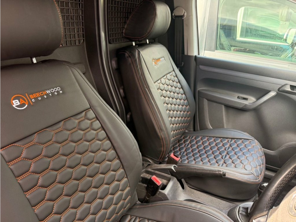Beechwood Autos has over 80 Custom VW Caddy's in stock and our passion and vision for new and individual styles of VW Caddy vans have attracted some of the best craftsmen and suppliers in the industry working with us to create one off custom builds. We specialise in transforming the VW Caddy beyond the standard into fully customised sport vans with bespoke leather, custom paint, Sportline, ABT and other top branded parts, we aim to offer our customers quality products and excellent value for money, from simple VW Caddy's builds to completely radical custom Caddy's. So for any VW Caddy needs come and see what we've got in stock, there's always plenty of custom transformations on the go, and if we don't have it, we'll build it for you, to your exact specification!, , A Luxury Vehicle at an Affordable Price, Pearl black in Colour, 19 INCH WHEELS AND TYRES, Golf R seats, Upgraded Colour Coded Bumpers, Lowered 75mm on PROSPORT Coilovers Front & Rear, Colour Coded Rear Spoiler, ABS Gloss Black Splitter Spoiler, ABS Front Splitter, Gloss Black Grills. We can further customise this Caddy to you exact specification! Part exchange considered., Open until 10pm, 7 days a week!, Please call to arrange a viewing or test drive., Buy with confidence from Beechwood Autos, 12V Socket in Dashboard, 15in Kemora Alloy Wheels inc. Locking Wh, 4 Speakers, Air Conditioning - Climatic Man. Air Con, Air Conditioning-Climatic Manual, Alarm - Thatcham Cat 1, Interior/Tow Awa, Alarm with Interior and Tow Away Protect, Alloy Wheels - 6J Kemora and Steel Spare, Alloy Wheels-15in Kemora and Steel Spare, Anti-Lock Brake System (ABS), Bluetooth - Incl. Multi-Function Display, Bluetooth Mobile Phone Connection, Body Coloured Bumpers, Body Coloured Bumpers and Wing Mirrors, Carpet Flooring in Cab, Climatic Air-Conditioning, Cruise Control, Dashboard with Tray Cover, Daytime Running Lights, Deadlocks, Digital Clock, Drivers Airbag, Electric Front Windows, Electric Pack, Electric