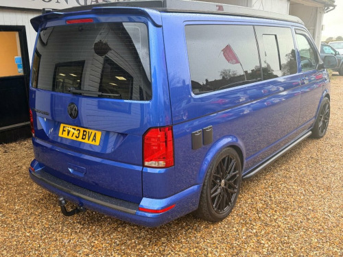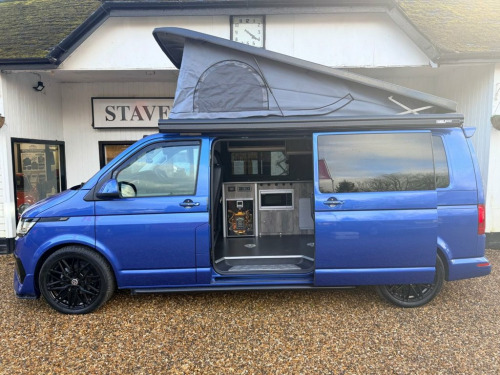 We are delighted to present for your consideration this exceptional VW Transporter T30 Highline 4 Berth Camper fitted with a 5 Speed Manual Gearbox, finished in Stunning Blue and complimented by Black Quilted Leather upholstery. This Camper is particularly well appointed and includes the Roll Top Bed, Spring Top with Airbed ready to take 2 Further Berths. There's double Hob Burners, Sink with Tap, Built in Fridge and Sharp Micro Wave, Heating, LED Lighting, Power inverter and even an exterior shower point. Canopy and Window Blinds Complete the set up for posh camping. The cabin is well presented and includes Apple Car Play / Android Auto, 20" Gloss Black Alloys, Bluetooth Telephone and Audio Player, Front & Rear Parking Sensors and Reversing Camera. With One Former Keeper (2 in total), she's just been Services so ready for that flrst Summer adventure... Starlight Blue, Towbar - Removable and Lockable with Tra, 12V Socket - Additional, 12V Socket - Front, 16in Alloy Wheels - Clayton, ABS - Anti-Lock Braking System, ACC - Adaptive Cruise Control, ASR - Anti Slip Regulation, Air Conditioning - Electronically Contro, Allergen Filter, Anti-Theft Alarm System with Interior Mo, App-Connect, Armrest - Drivers, Automatic Dimming Rear View Mirror, Automatic Headlight Activation with Dayt, Automatic Post-Collision Braking System, BAS - Brake Assist System, Body-Coloured Door Mirror Housings and H, Comfort Pack, Composition Colour DAB Plus Radio System, Crosswind Assist, Dash Panel with Open Stowage Compartment, Dashboard - Dimmable Illumination, Door