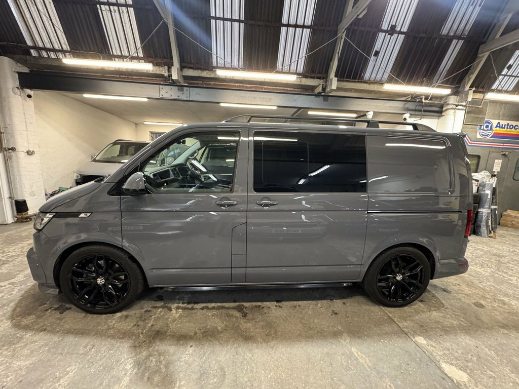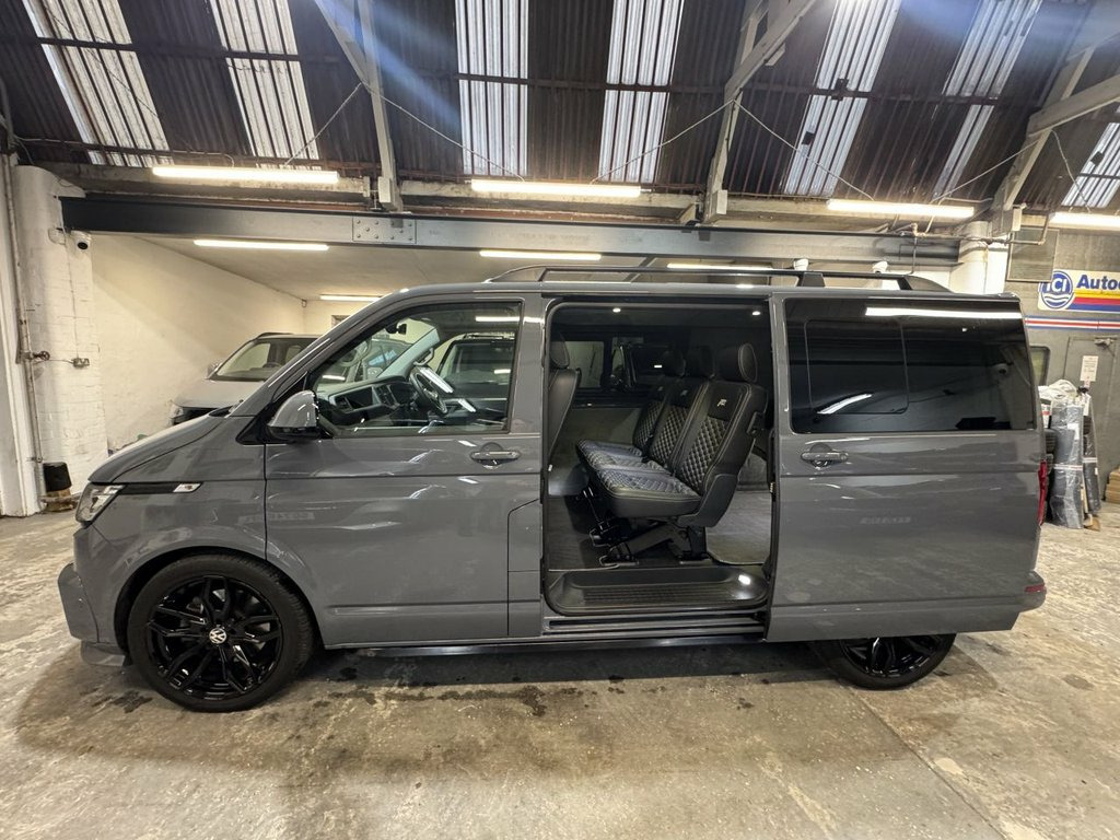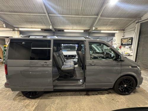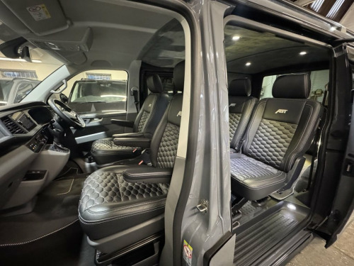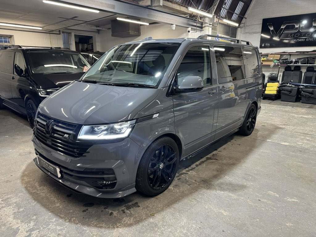 Volkswagen T6.1 Transporter Kombi low mileage 204ps DSG T32 SWB Highline specification plus choice factory options to include LED lights, twin electric side doors, electric tailgate, heated seats and rear camera. Finished in Pure Grey this much sought after high specification Transporter is further enhanced by genuine ABT front skirt, ABT grill, gloss black colour coding to the VW grills and wing mirror bodies, 20" alloy wheels and 40mm lowered suspension, side skirts, roof rails and tailgate spoiler. Internally the seating has been reupholstered in black leather and Alcantara in Horizontal Hex design with silver stitch-work and ABT logos. Sound deadened and insulated to the rear finished with Smoke Grey Alcantara panelling over Graphite Grey automotive carpeting, LED lighting to the roof and tailgate panels and 12v/USB power points to rear of the drivers seat. Finance arranged with HP, HP with balloon and PCP available. Part exchange welcomed. Viewing by appointment, please message or ring to arrange. UK delivery available. 1 Waste Bin in Door Storage Compartment, 12V Socket - Additional, 12V Socket - Front, 17in Alloy Wheels - Devonport, ABS - Anti-Lock Braking System, ACC - Adaptive Cruise Control, ASR - Anti Slip Regulation, Air Conditioning - Electronically Contro, Allergen Filter, Anti-Theft Alarm System with Interior Mo, App-Connect, Armrest - Drivers and Passenger, Automatic Dimming Rear View Mirror, Automatic Headlight Activation with Dayt, Automatic Post-Collision Braking System, BAS - Brake Assist System, Body-Coloured Door Mirror Housings and H, Composition Colour DAB Plus Radio System, Crosswind Assist, Dash Panel with Open Stowage Compartment, Dashboard - Dimmable Illumination, Door Mirrors - Elect