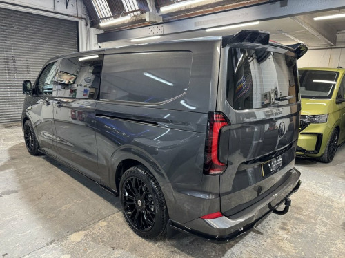 Volkswagen "T7" Custom Flexi Seat Kombi, new generation Transporter 170ps automatic, Commerce Pro T32 LWB. 75reg with 99 miles. LED lights, Comfort captain seat, power adjusting heated seats, heated steering wheel, Wireless CarPlay, Park Pack Premium, Digital rear view mirror with dash cam function, twin power latching side doors, wireless phone charging, and tailgate option with heated window and wash/wipe. Custom Kombi with our rear flexi seat system consisting of 3 individual rear seats that are position adjustable, recline, fold flat, removable, create a centre table and have Isofix to the outer seats. Reupholstered in black leather and Alcantara with Horizontal Hex design with black and red stitch-work. Fully lined out to the rear with light grey suede effect over dark grey automotive carpeting. Sound deadened and insulated. To complete this stunning interior our T7 Custom Kombi also includes the Vdub GT steering with red stitch-work. Finished in Graphite Dust Grey this Pro specification Transporter is further enhanced with the Vdub exterior styling works to include 20" alloy wheels, lowered suspension, gloss black colour coding to the front grill, body colour and gloss black VW badges, gloss black front splitter, side + rear skirts and rear spoiler. Also available in Stone Grey. Finance arranged with HP. HP with Balloon and PCP. Part exchange vehicles welcomed. Viewing by appointment, please message or ring to arrange. Mainland UK delivery availa 12-Inch Digital Drivers Display, 12-V Outlet on D-Pillar at The Bottom - , 12-Volt Outlet in Centre Console and 12-, 13in Touchscreen Infotainment Display wi, 16in Alloy Wheels - Montreal in Silver, 2 LED Lights in Roof of Load Compartment, 2 x 15-W USB-C Data and Charging Ports i, 2-Seater Bench and Single Drivers Seat i, 2-Seater Bench with Load-Through System , 3 Super-Bright LED Lights in Rear of Car, 3 x 15-W USB-C Charging Ports - 1 x Stor, 4 Speakers - x2 in Dashboard - x2 in Cab, 4-Way Head Restraints - Adjustable in He, 5 Additional USB-C Charging Ports, 5 Plus Promise, 55L Fuel Tank, 5G Modem, 6-Way Adjustable Driver Seat, AGM Vehicle Battery and 2nd Battery - Un, Adaptive Cruise C