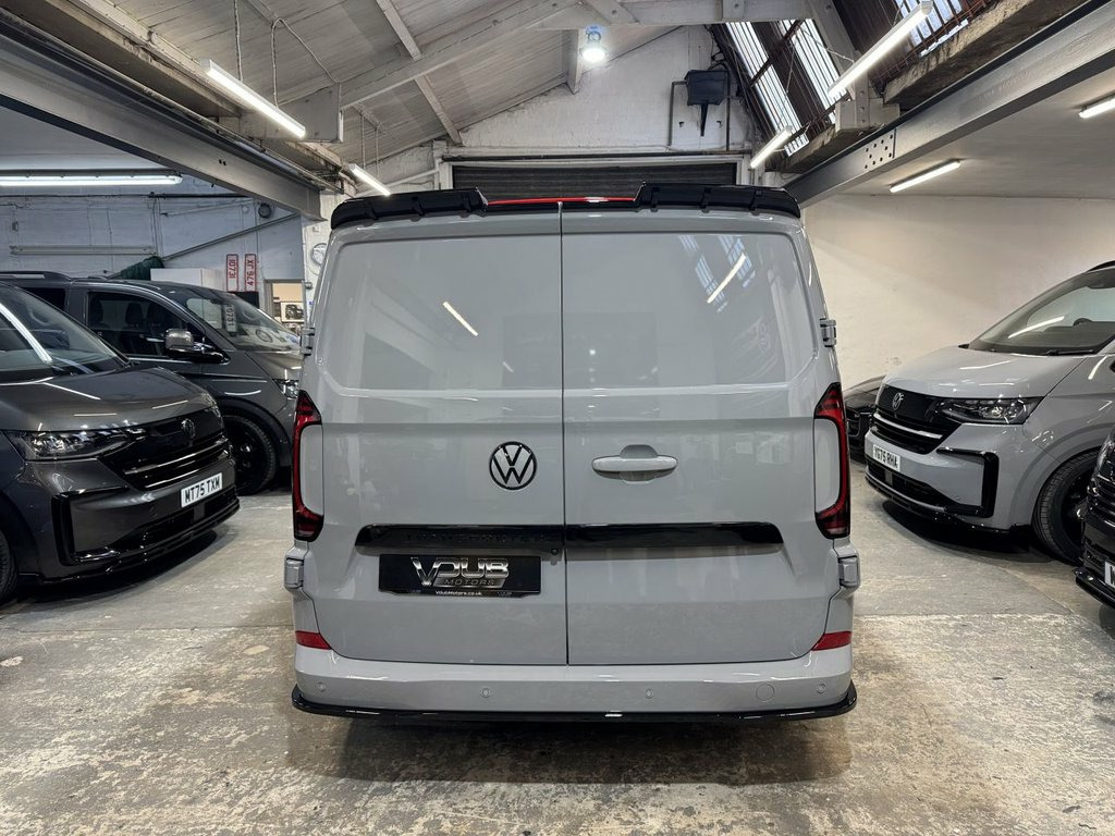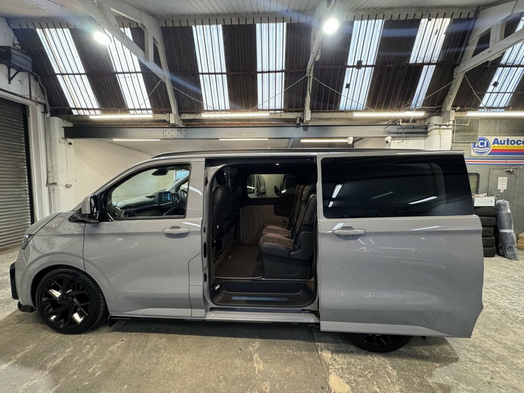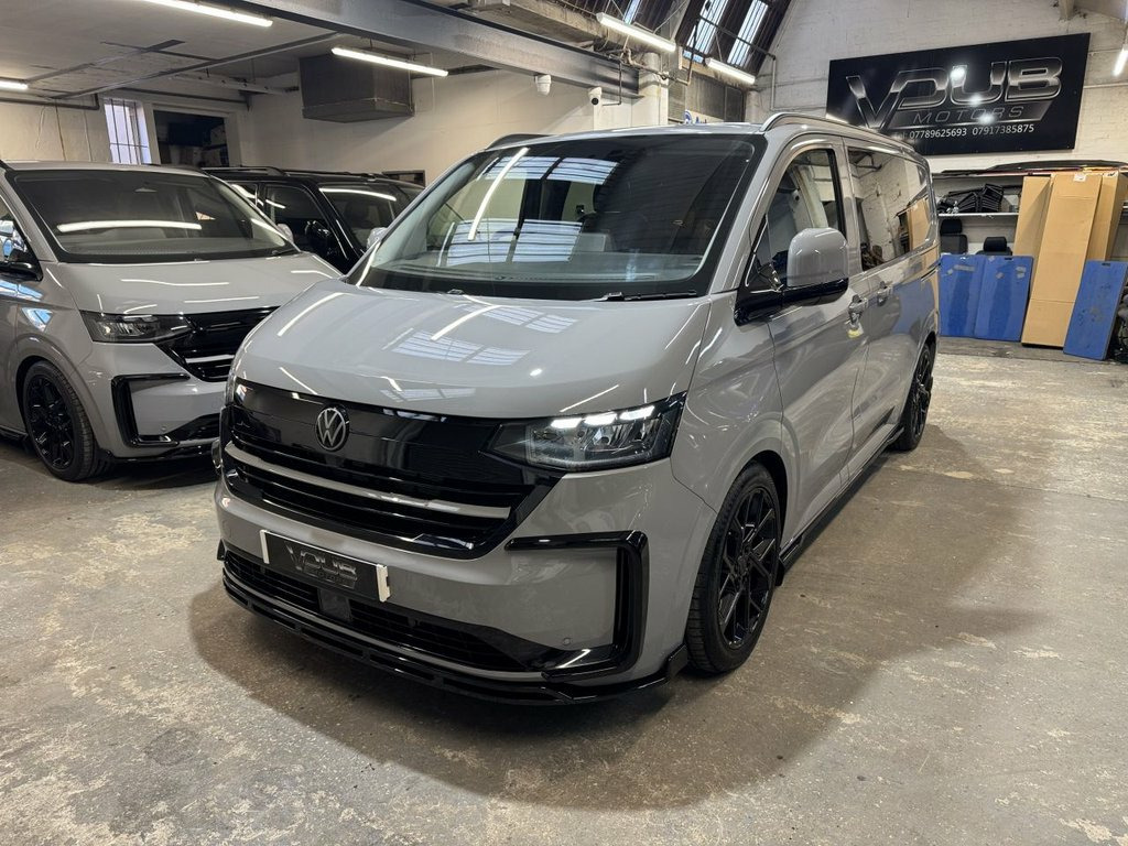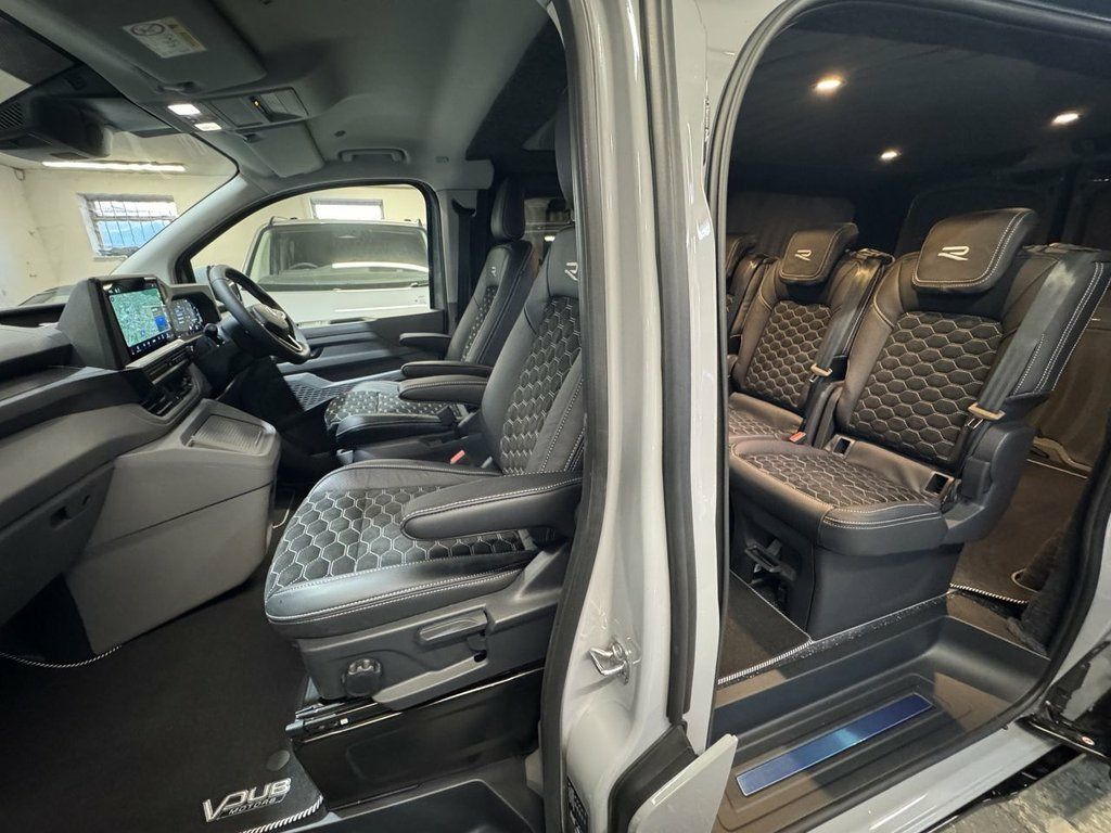 Volkswagen "T7" Custom Kombi, new generation Transporter 150tdi automatic, Commerce Plus T30 SWB. 75 registration with 95 miles. Commerce Plus with factory optioned LED lights, captain passenger seat, rear camera, extended dash console, connectivity pack, 70L fuel tank, roof rails, twin side doors, comfort drivers seat, and twin rear doors. Custom Kombi with our rear flexi seat system consisting of 3 individual rear seats that are position adjustable, recline, fold flat, removable, create a centre table and have Isofix to the outer seats. Reupholstered in black leather and Alcantara with Horizontal Hex design and silver grey stitch-work. Fully lined out to the rear with light grey suede effect over dark grey automotive carpeting. Sound deadened and insulated. To complete this stunning interior our T7 Custom Kombi also includes the Vdub GT steering with silver grey stitch-work. Finished in Stone Grey this Plus specification Transporter is further enhanced with the Vdub exterior styling works to include 20" Velar alloy wheels, lowered suspension, gloss black colour coding to the front grill, body colour and gloss black VW badges, gloss black front splitter, side + rear skirts and rear spoiler. Also available in Metallic Graphite Dust Grey. Finance arranged and part exchange vehicles welcomed. Viewing by appointment, please message or ring to arrange. Mainland UK delivery available. 13in Digital Drivers Display, 13in Touchscreen Infotaintment Display w, 16in Steel Wheels - 6.5J, 2 LED Lights in Roof of Load Compartment, 2 x 15-W USB-C Data and Charging Ports i, 2-Seater Bench and Single Drivers Seat i, 2-Seater Bench with Load-Through System , 4 Speakers - x2 in Dashboard - x2 in Cab, 4-Way Head Restraints - Adjustable in He, 5 Plus Promise, 55L Fuel Tank, 5G Modem, 6-Way Adjustable Driver Seat, AGM Vehicle Battery and 2nd Battery - Un, Air Conditioning System with Manual Cont, Alternator - 230A, Anti-Theft Alarm System with Interior Mo, Black Plastic Scuff Plate for Sliding Do, Black Plastic Scuff Plate in Front, Body-Coloured Add-On Parts and Body-Colo, Body-Coloured