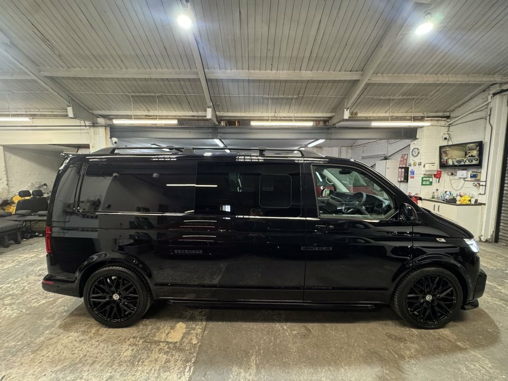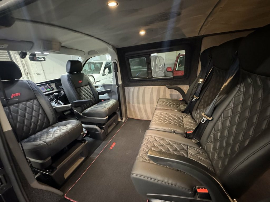 Volkswagen T6.1 LWB Transporter 150ps DSG automatic Custom Kombi Registered 29/12/23 and only 5200 miles. Finished in Deep Pearl Black. LWB Highline specification plus VW optioned LED lights, Discovery Media, heated swivel captain seats, tailgate with rear camera, park assist, and power latching side door. Vdub kombi conversion to include 2+1 rear seats that are position adjustable, fully removable and recline. Seating finished in black Diamond design with black stitch work and ABT logos. Lined out to the rear with LED lighting to the roof panel and tailgate. Additional 12v/USB power. Externally features include ABT front skirt and grill, rear spoiler, side bars and roof rails, 40mm lowered suspension sitting on 20" Wraith alloy wheels. All dealer finance and part exchange facilities available. Part exchange vehicles always considered. Viewing by arrangement, please message or ring to arrange. Evening and weekend viewings available. 12V Socket - Additional, 12V Socket - Front, 16in Alloy Wheels - Clayton, ABS - Anti-Lock Braking System, ACC - Adaptive Cruise Control, ASR - Anti Slip Regulation, Air Conditioning - Electronically Contro, Allergen Filter, Anti-Theft Alarm System with Interior Mo, App-Connect, Armrest - Drivers, Automatic Dimming Rear View Mirror, Automatic Headlight Activation with Dayt, Automatic Post-Collision Braking System, BAS - Brake Assist System, Body-Coloured Door Mirror Housings and H, Comfort Pack, Composition Colour DAB Plus Radio System, Crosswind Assist, Dash Panel with Open Stowage Compartment, Dashboard - Dimmable Illumination, Door Mirrors - Heated - Power Adjustable, Driver Alert System,