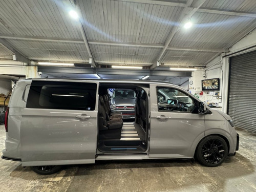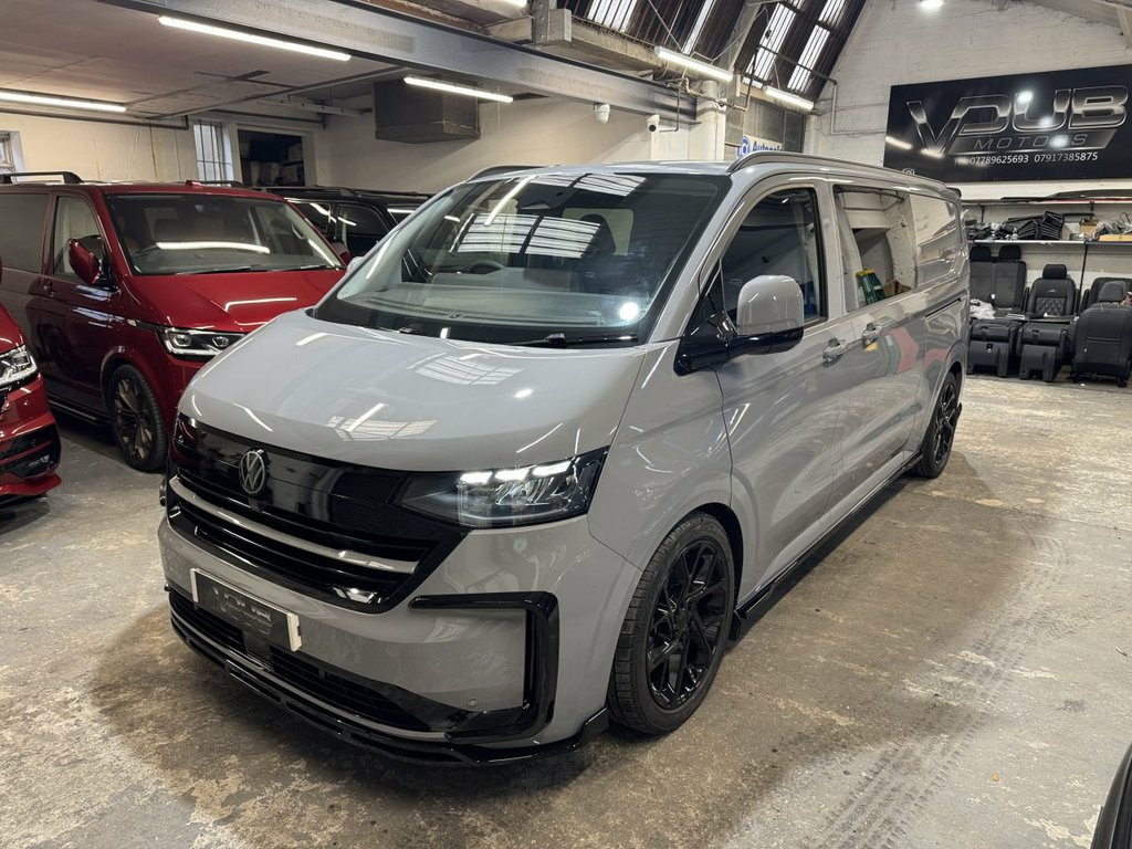 Volkswagen T7 New Generation Transporter 150ps Automatic T32 LWB Commerce Plus, 90 miles. Commerce Plus with factory optioned LED lights with Signature rear lights, single passenger seat, extra wide dash console, wireless phone charger, twin power latching side doors and tailgate. Finished in Stone Grey this great spec Transporter has the Vdub Motors rear Flexi seat kombi system with x3 individual rear seats that are position adjustable, fold flat and are removable. Externally this stunning Transporter is further enhanced with Vdub exterior styling works to include 20" Velar alloy wheels, lowered suspension, gloss black colour coding to the front grill, gloss black front splitter, side and rear skirts and rear spoiler. Finance arranged and part exchange vehicles welcomed. Viewing by appointment, please message or ring to arrange. Mainland UK delivery available. 13in Digital Drivers Display, 13in Touchscreen Infotaintment Display w, 16in Steel Wheels - 6.5J, 2 LED Lights in Roof of Load Compartment, 2 x 15-W USB-C Data and Charging Ports i, 2-Seater Bench and Single Drivers Seat i, 2-Seater Bench with Load-Through System , 4 Speakers - x2 in Dashboard - x2 in Cab, 4-Way Head Restraints - Adjustable in He, 5 Plus Promise, 55L Fuel Tank, 5G Modem, 6-Way Adjustable Driver Seat, AGM Vehicle Battery and 2nd Battery - Un, Air Conditioning System with Manual Cont, Alternator - 230A, Anti-Theft Alarm System with Interior Mo, Black Plastic Scuff Plate for Sliding Do, Black Plastic Scuff Plate in Front, Body-Coloured Add-On Parts and Body-Colo, Body-Coloured